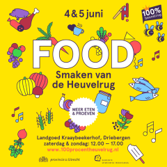 Het eerste weekend van juni staan we met een stand op FOOD. Smaken van de Heuvelrug. Het Landgoed Kraaybeekerhof in Driebergen vormt het decor voor een tweedaags foodfestival. Op het 6 ha groot festivalterrein zijn verrassende, interessante workshops, is spectaculair theater, innovatief design én ook lekker eten en drinken uit eigen streek, of is het gewoon lekker relaxen op het sfeervolle landgoed. Het verrijkt je kijk op voedsel en is een relaxed en leerzaam dagje uit. Hier vind je meer informatie.